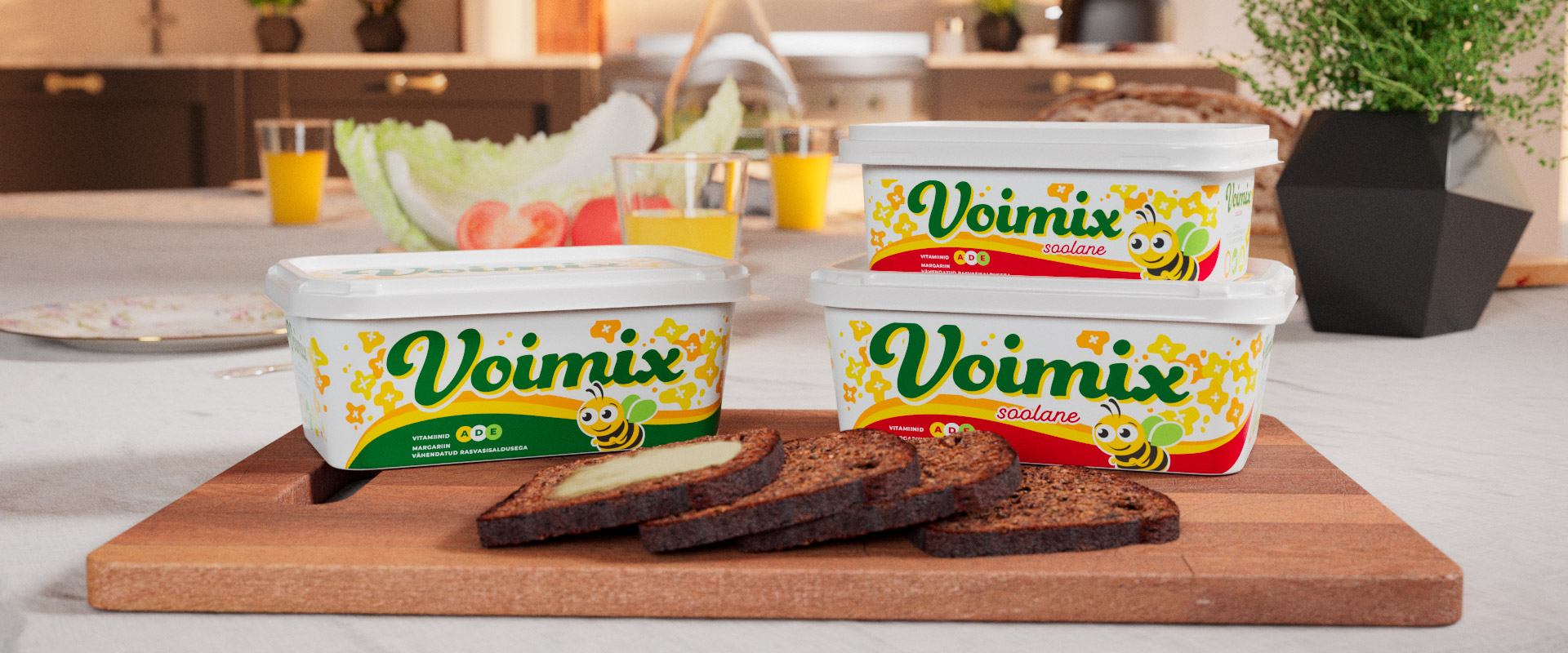 Voimix sarja kuuluvad maitsvad määrded, mis sobivad võileibade valmistamiseks, toidu tegemiseks ja küpsetamiseks. Voimixi hea maitse ja populaarsuse saladuseks on toodetes kasutatav kõrge kvaliteeteediga rapsiõli. Voimix Soolane on nüüd saadaval ka 400g pakis – hea suurus terve pere jaoks.